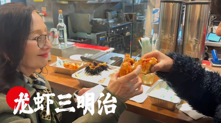 徐冬冬和尹子维夫妻俩最好的就是一起吃美食,尹子维妈妈刚好也有此爱好。开胃菜就是海胆,生蚝,龙虾三明治等海鲜。